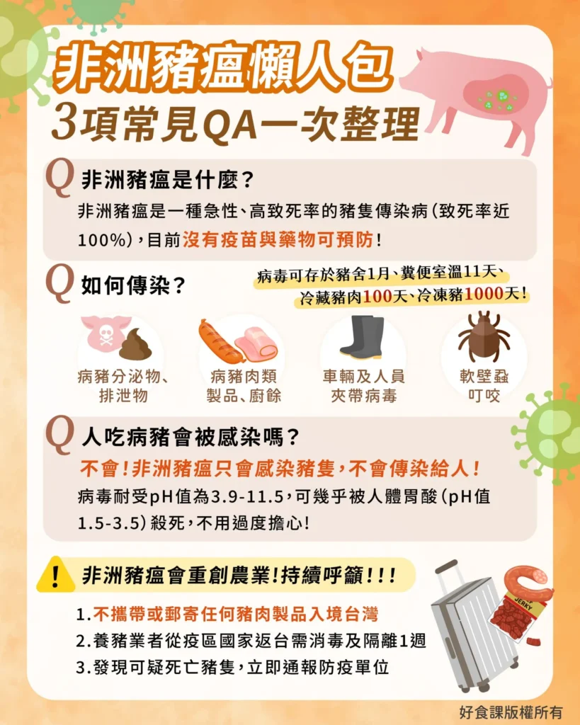 每當非洲豬瘟疫情成為新聞焦點,民眾最關心的問題莫過於:「這會不會傳染給人?非洲豬瘟人吃了會怎樣?」